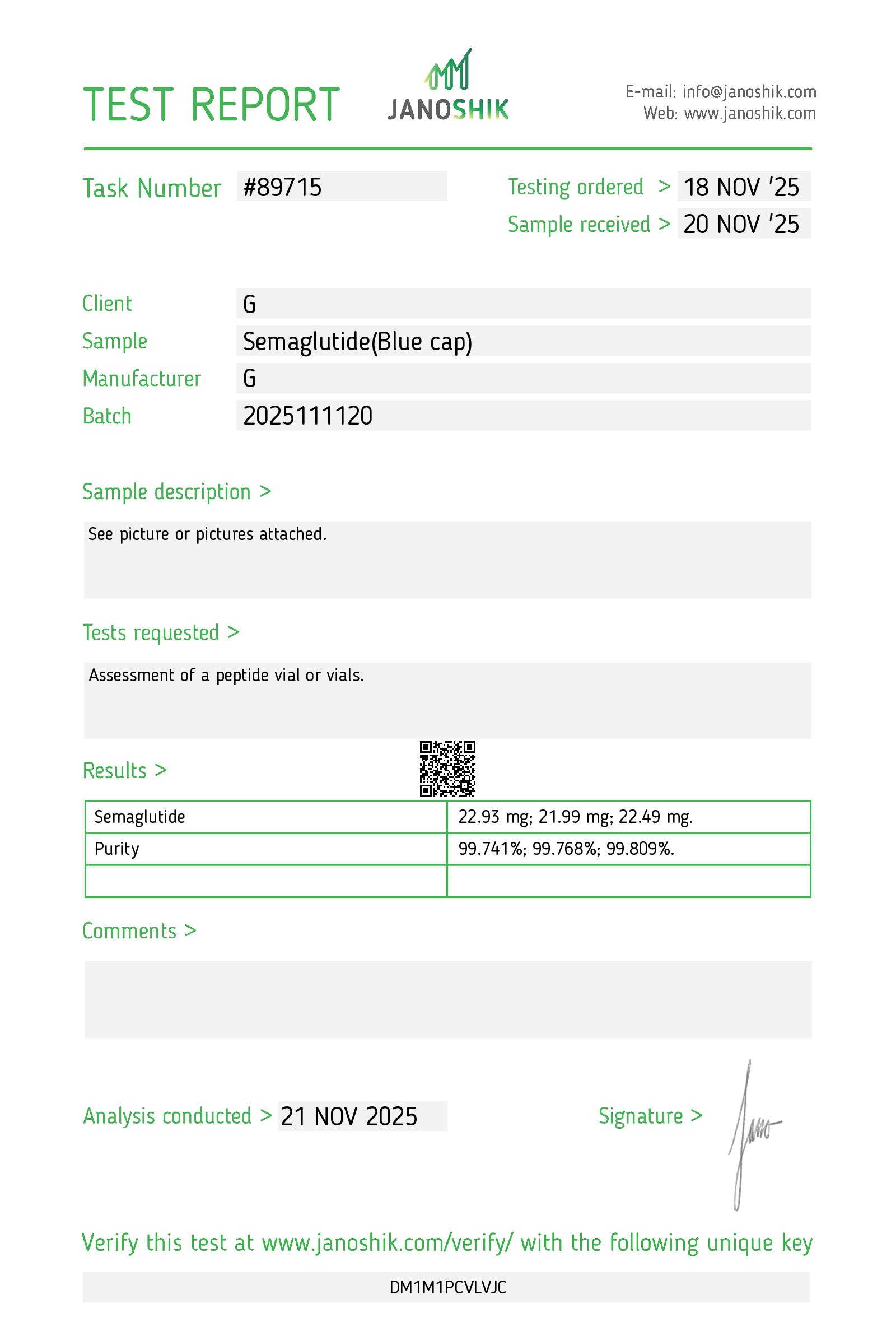 Our products are routinely and rigorously tested for purity, with Certificates of Analysis (COAs) verifiable through independent third-party laboratories.